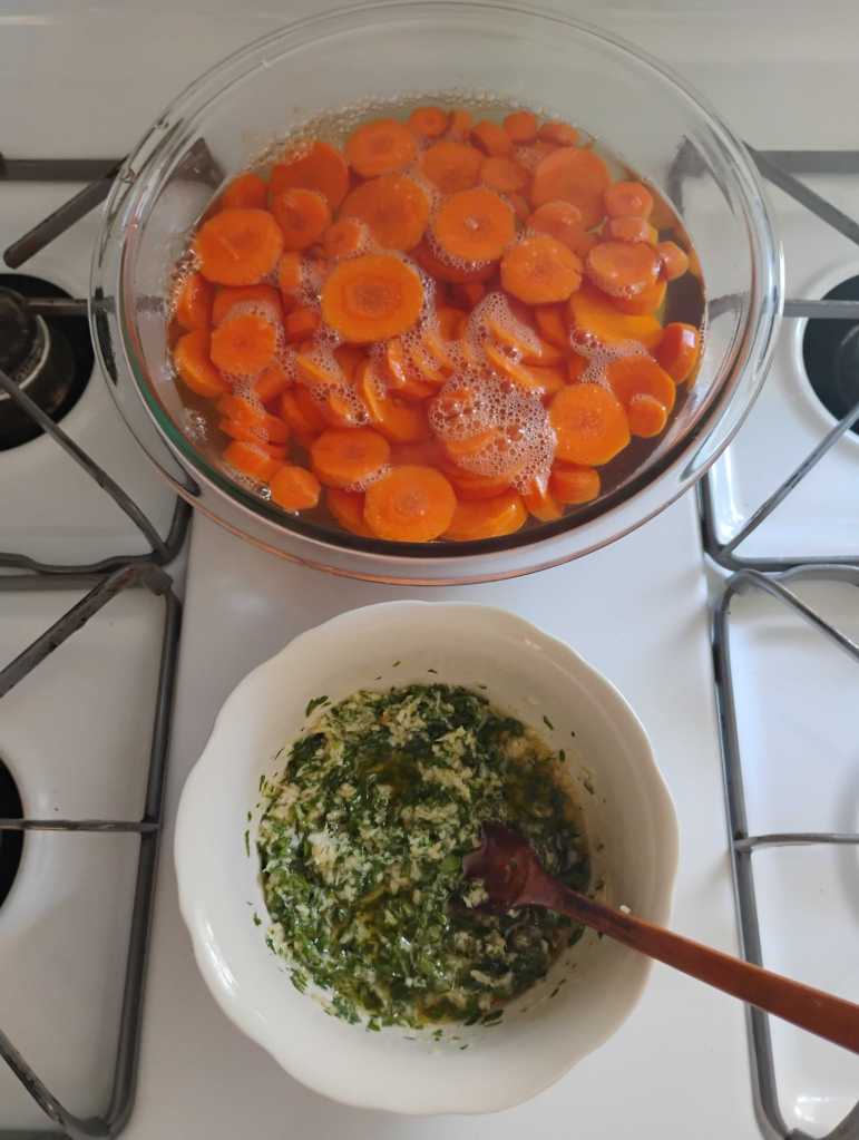 Wash, peel and slice the carrots. Put the carrots in a glass bowl and pour the hot brine over the carrots. Let the carrots sit for 3 hours in this brine. After 3 hours, drain the brine into a glass container. You can use this brine a few times.