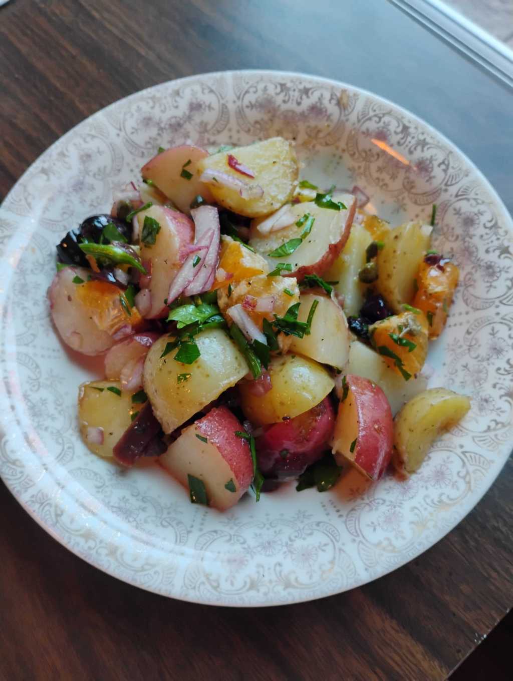 Cut potatoes into bite-sized pieces. In a large bowl, combine potatoes, clementines, red onion, capers, olives, and parsley.